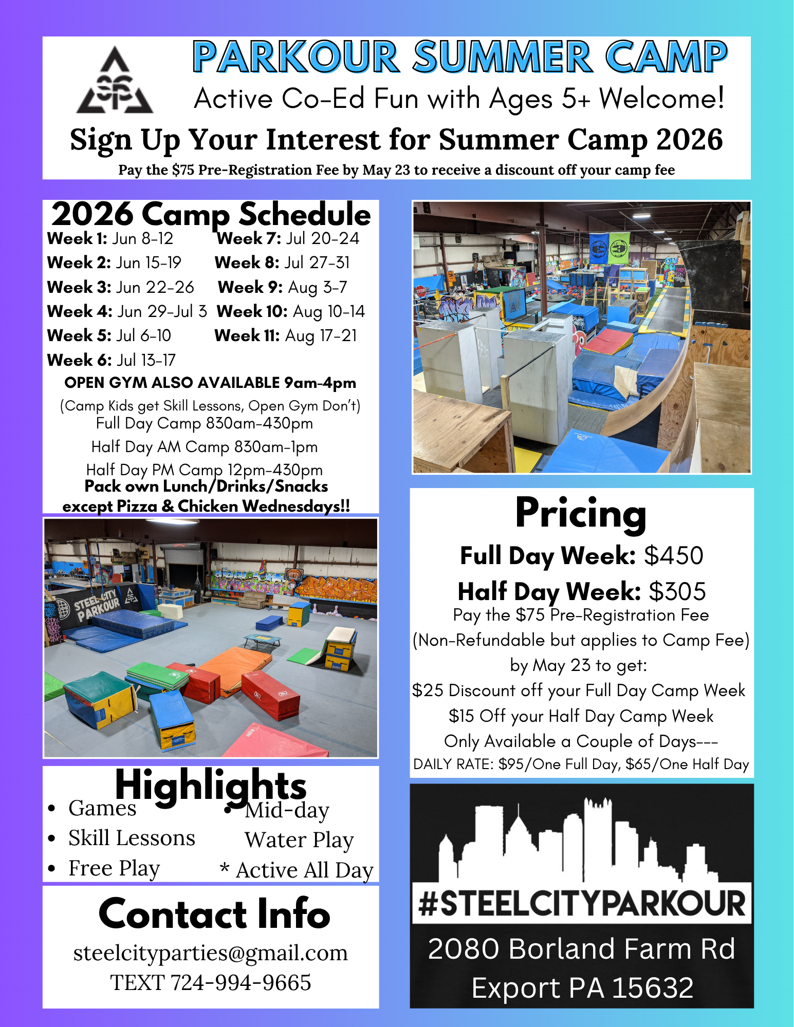 Email Steelcityparties@gmail.com to register